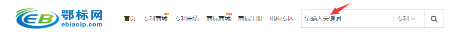 1.通過首頁右上方的搜索欄,輸入關(guān)鍵字的方式搜索專利商標(biāo)信息,如下圖: