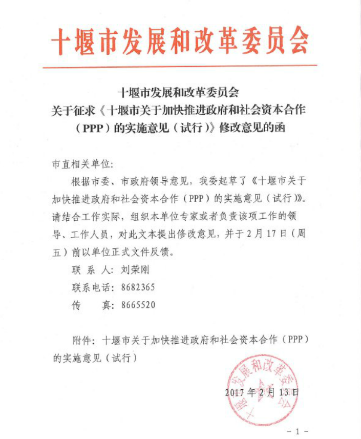 關(guān)于征求《十堰市關(guān)于加快推進(jìn)政府和社會(huì)資本合作(PPP)的實(shí)施意見(試行)》修改意見的函
