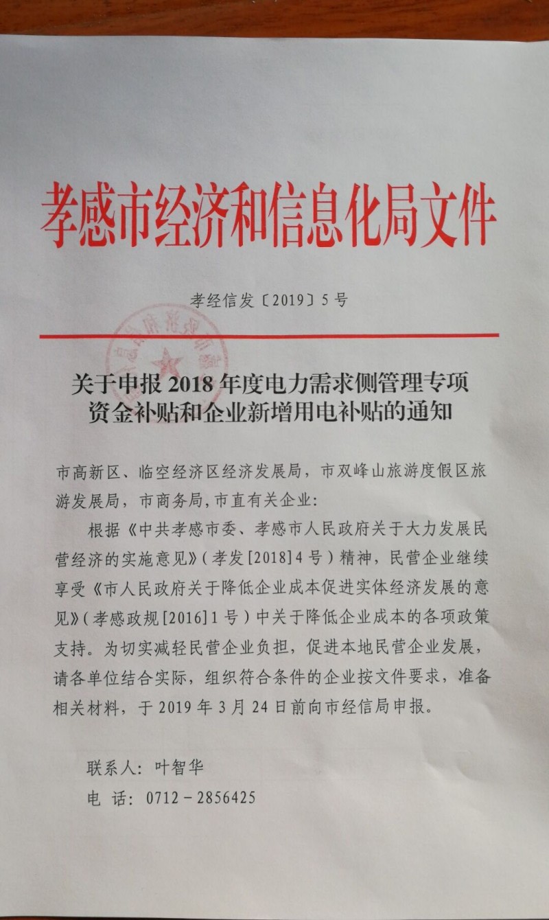 關(guān)于申報2018年度電力需求側(cè)管理專項資金補(bǔ)貼和企業(yè)新增用電補(bǔ)貼的通知