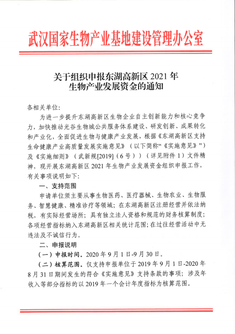 附件2:《東湖高新區(qū)2021年生物產(chǎn)業(yè)發(fā)展資金申請(qǐng)報(bào)告》封面.docx