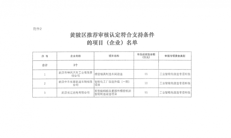 附件2:黃陂區(qū)推薦審核認定符合支持條件的項目(企業(yè))名單