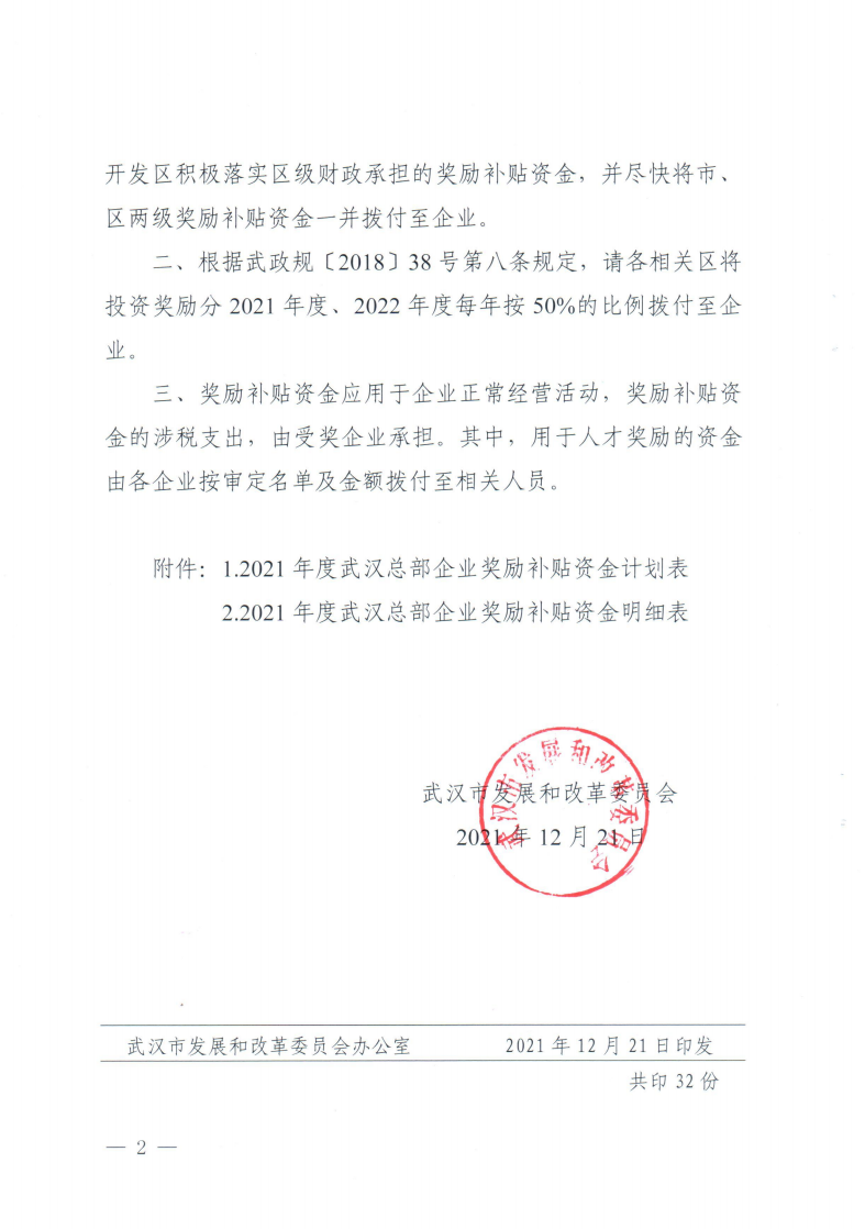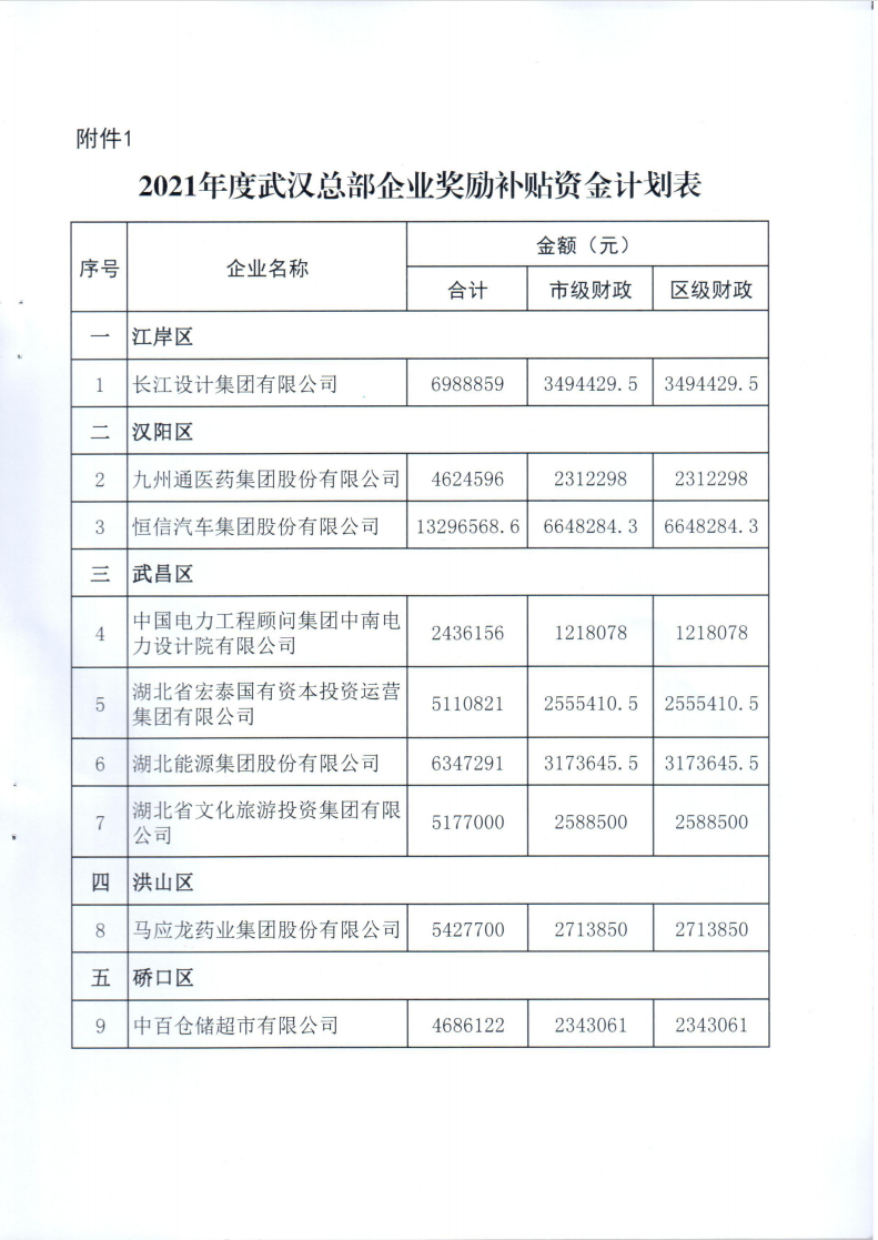 市發(fā)展改革委關(guān)于下達2021年度武漢總部企業(yè)獎勵補貼資金計劃的通知